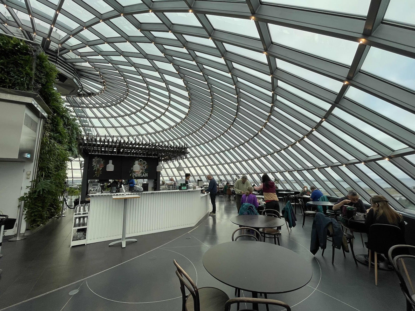 Today, anticipating another rainy cold day, we decided to hike to the Perlman Museum. The building consists of an immense glass dome that sits on top of six hot-water tanks each filled with geothermal heated water.