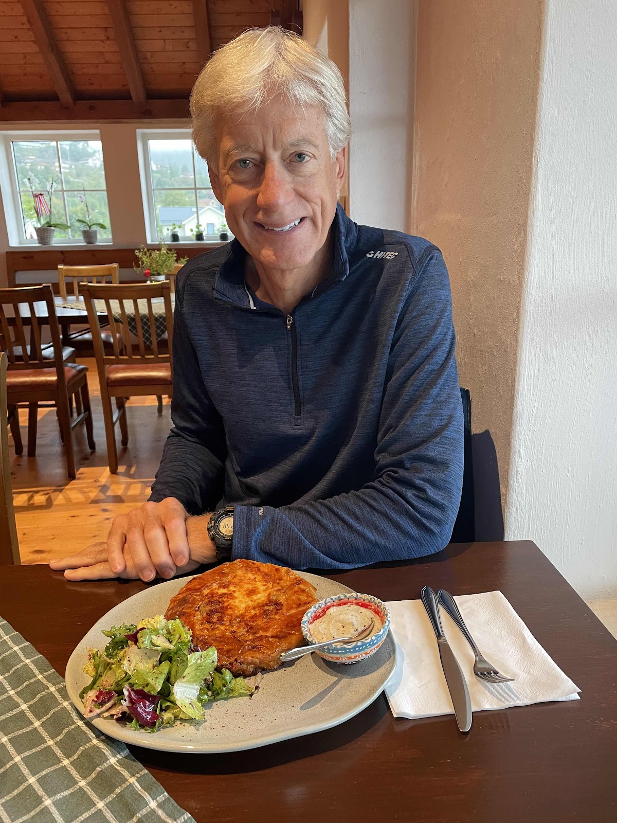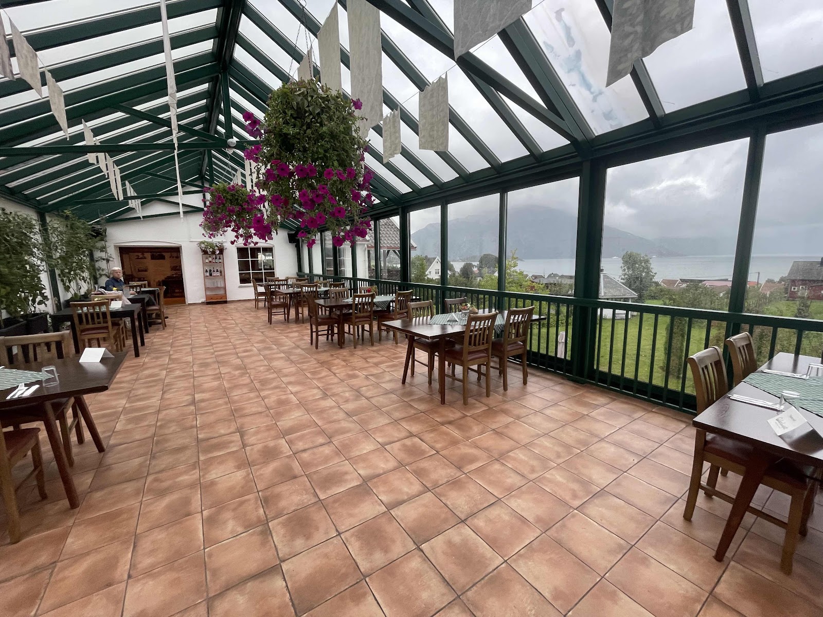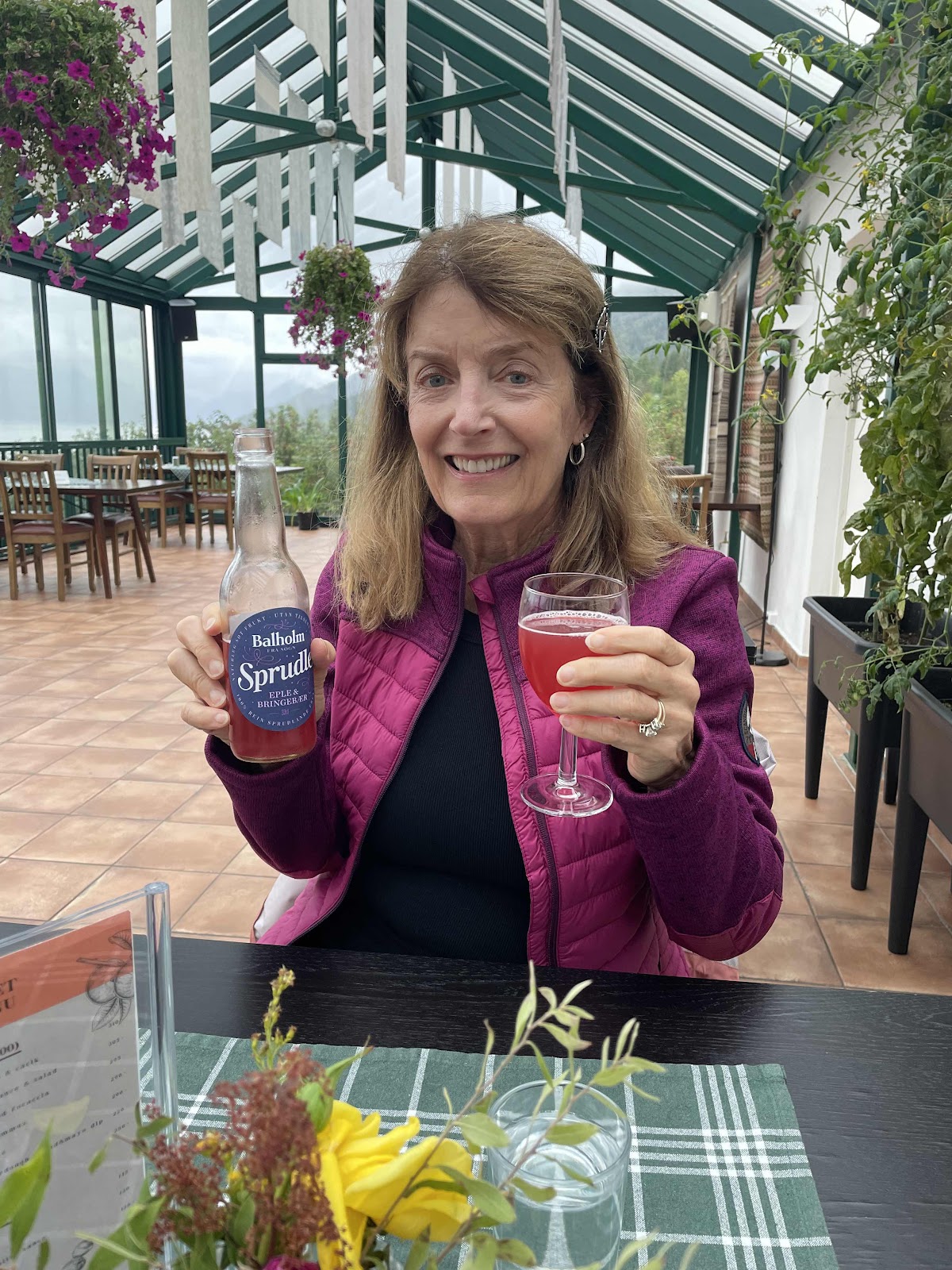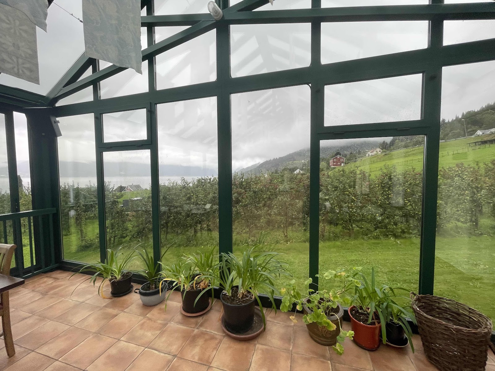 So today, when we knew it was going to rain all day, we decided to visit Ciderhurst in Balestrand where apples are grown and processed into fruit drinks, wine, and ciders. We had a chance to learn more about apple growing in Norway as well as the process of making the wines and ciders. And we had a delicious lunch on a very rainy day in the beautiful Ciderhurst center.