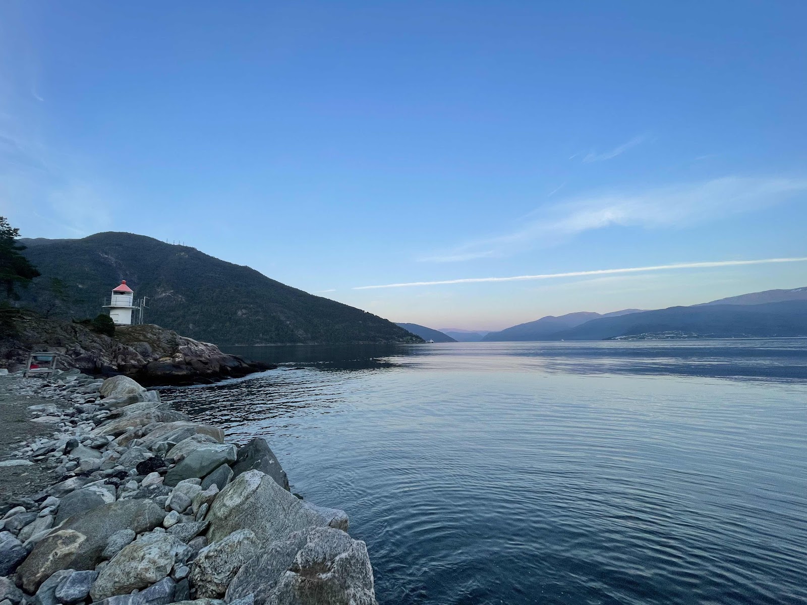 We got back to the cabin, made a sandwich for dinner, then walked down to the fjord for a couple of sunset photos. We were blessed with great weather today for all our exploring.