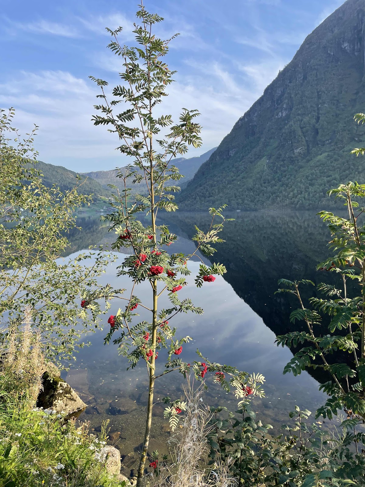 Today we explored driving over the back roads up and down mountains to see more of this beautiful countryside. We started by jumping in our car and then hopping on to a short ferry ride across the fjord. The ferries are an important part of the travel in this area - one of the things we learned is they are almost all electric!
